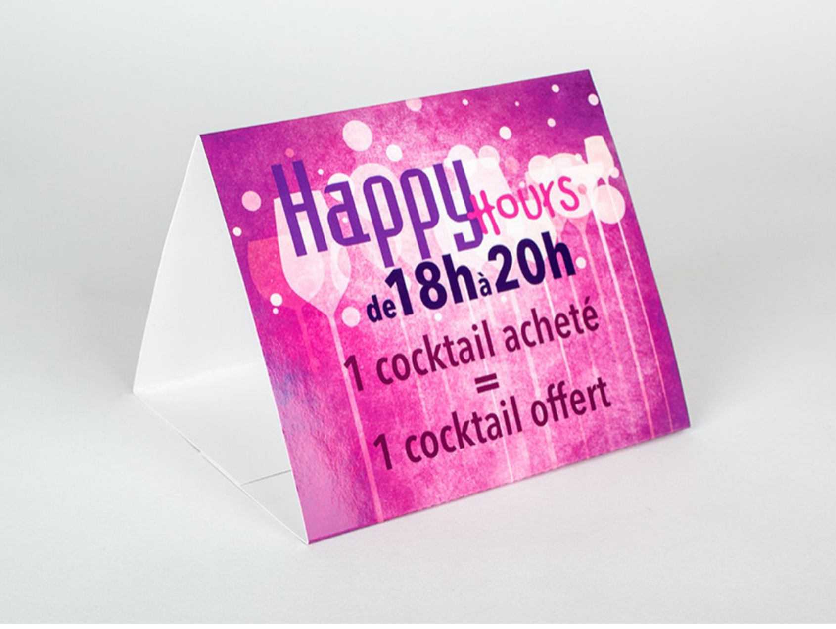 Une fois le concept retenu, vous pouvez commander l’impression dans la quantité souhaitée. Nos PLV de table ne sont pas de simples supports d’information, mais de véritables outils stratégiques pour susciter l’intérêt et laisser une empreinte durable.